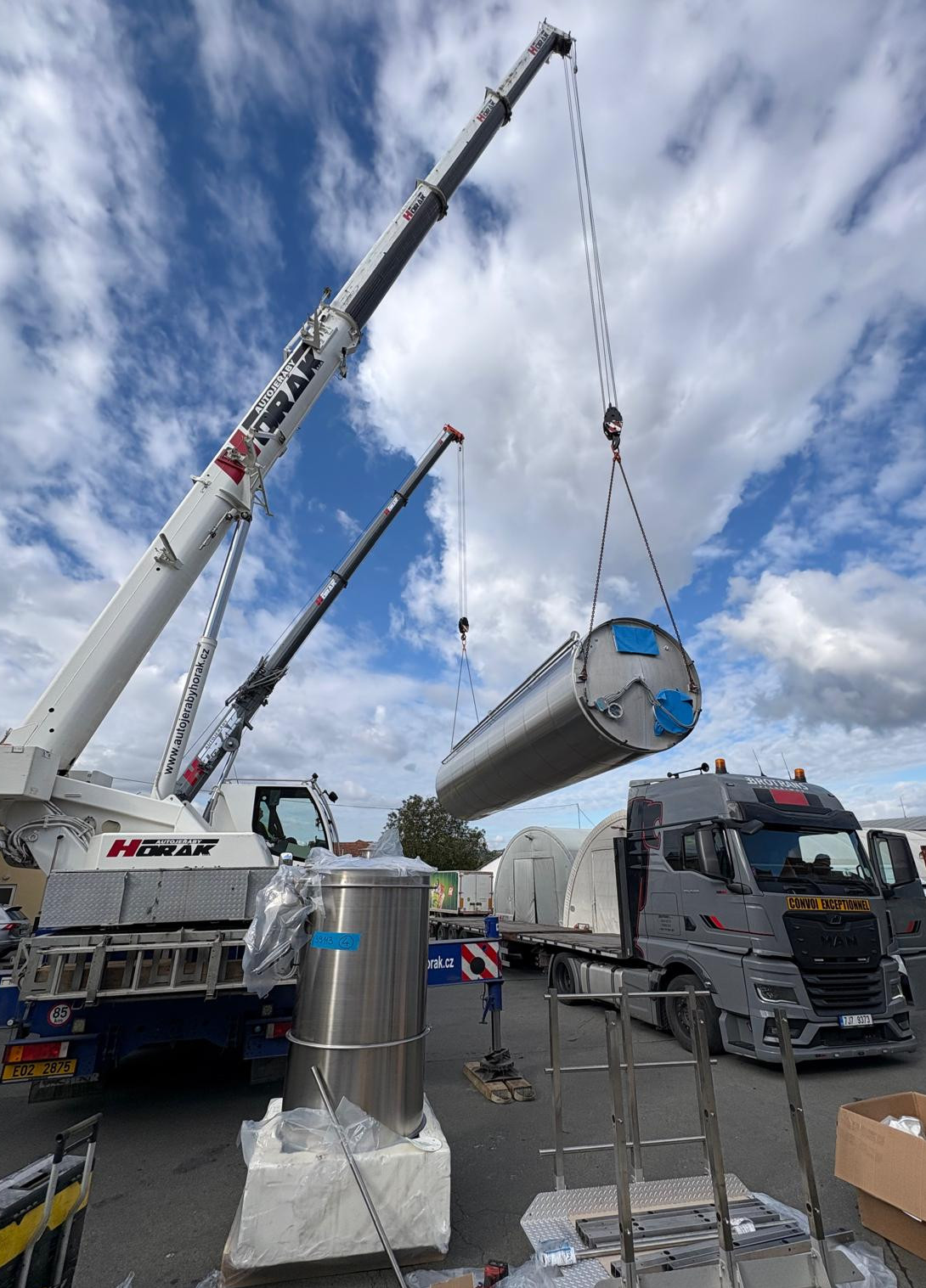 Koncem září se naši technici přesunuli z Prostějova, kde montovali a zprovozňovali surovinové hospodářství a mísící centrum u našeho klienta Profrost, a.s., do nedalekého Šumvaldu k našemu klientovi - ÚSOVSKO FOOD a.s.. Klient si po dobré zkušenosti s předchozí instalací z roku 2020 objednal pro své linky na výrobu extrudovaných snacků značky Bersi další venkovní nerezové silo GLOBOSILO od našeho italského partnera – společnosti CEPI S.p.A. pro skladování kukuřičné krupice o kapacitě cca. 48 tun s příjmem z autocisterny, příslušenstvím bezpečnostních prvků, vážením sila s napojením na stávající silo GLOBOSILO a pneudopravu.